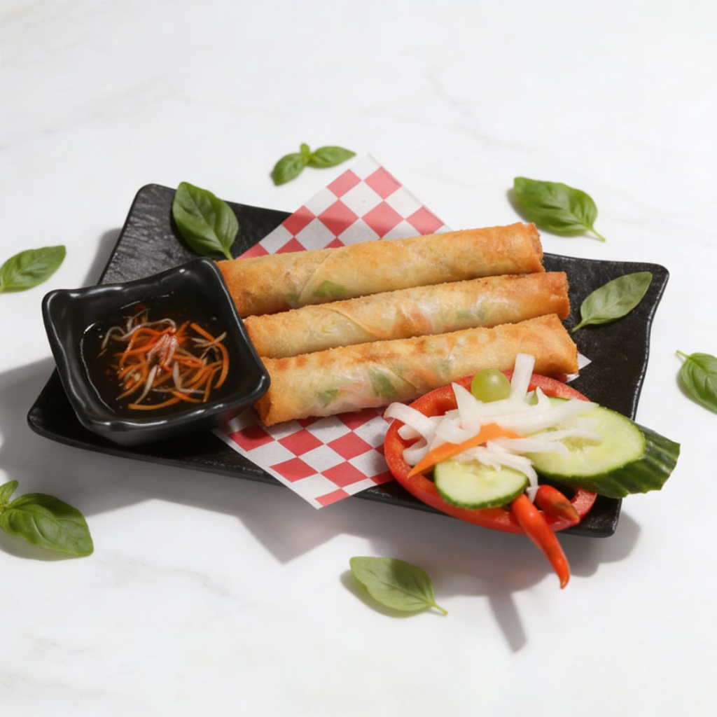 3 rolls filled with pork, taro, and vegetables served with chili fish sauce on the side