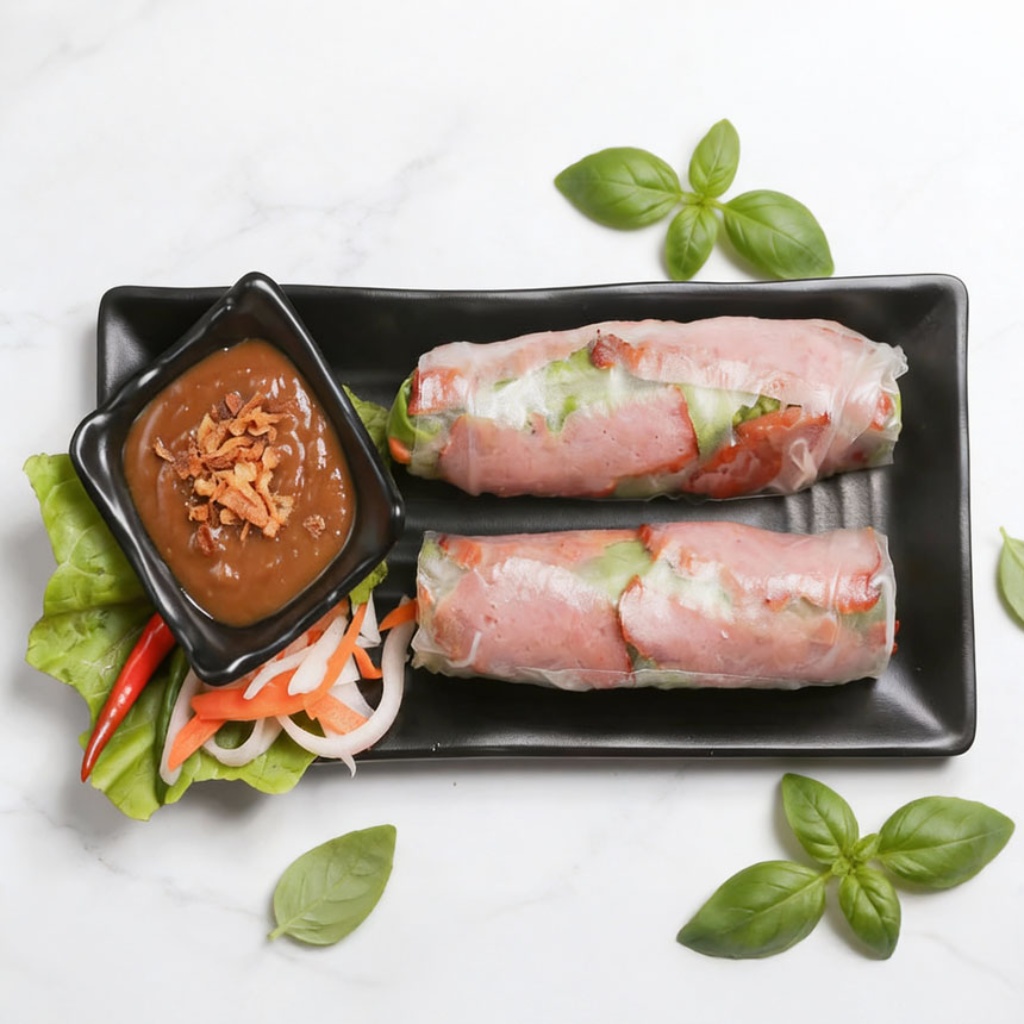 1 Salad Roll, 1 Spring Roll, 1 Choice of Grilled Lemongrass Chicken, Pork Skewer, or Minced Pork Patty