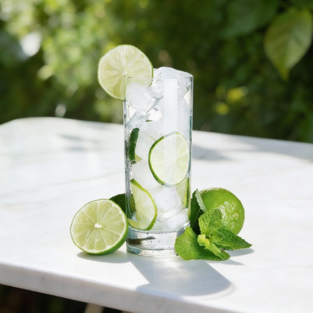 Freshly squeezed lime juice mixed with water and sugar, typically served over ice.