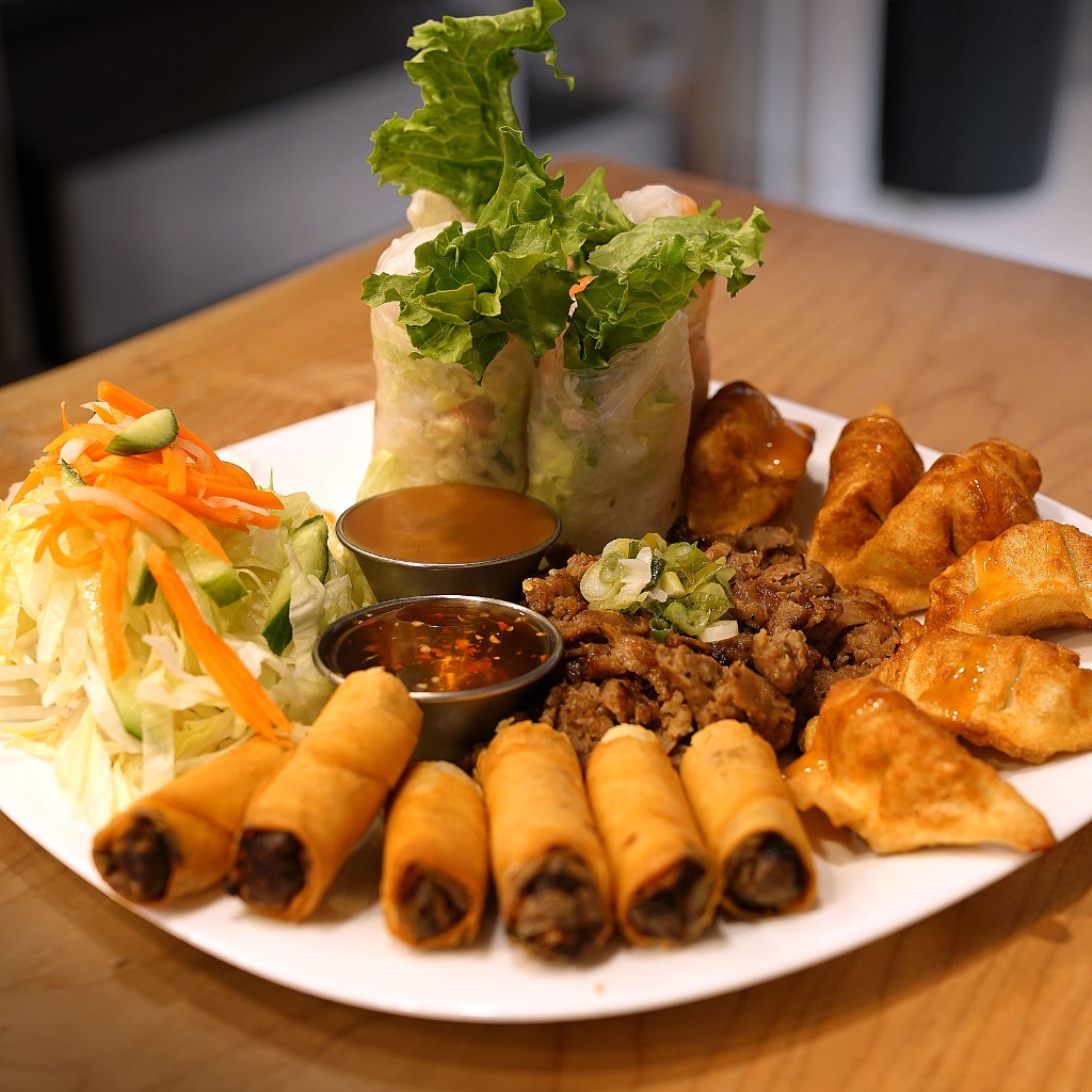 Comes with Salad Rolls, Spring Rolls, Grilled Pork & Chicken Dumplings
