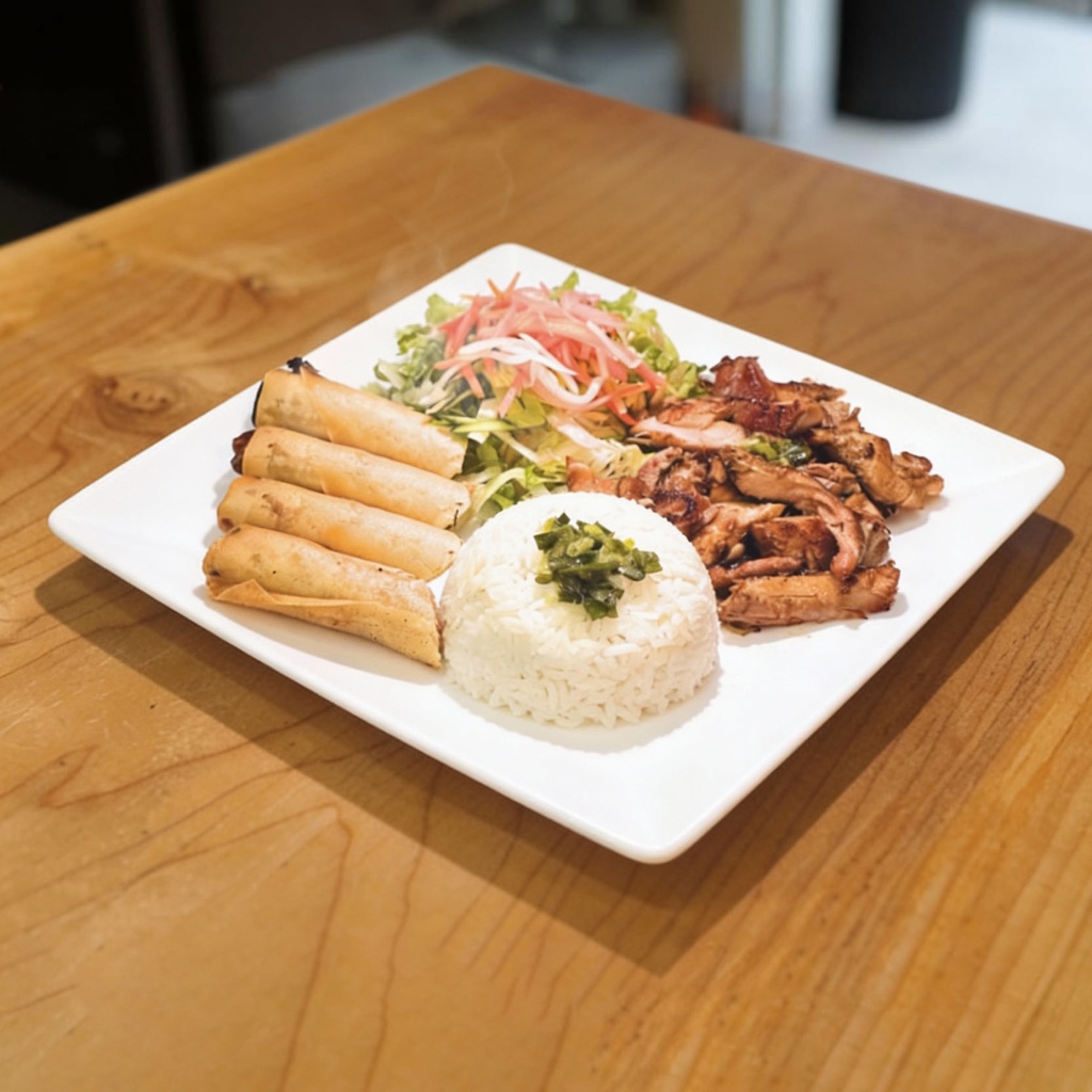 Grilled Pork (6oz), Pork & Chicken Patty, Prawns (4) and Spring Rolls (2)